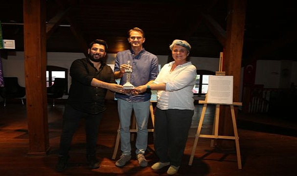 Selçuk Efes Kent Belleği sorumlusu Tolga Mert, eşsiz bir resim sergisi ile Efes Selçuk Kent Belleği’nde sanat severler ile buluşan Bora Eşiz’e teşekkür ederek Efes Selçuk’un simgesi olan kadın tanrıça Artemis heykeli hediye etti.